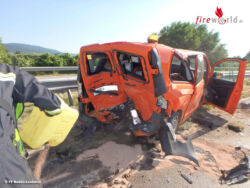Beim Eintreffen ergab sich folgendes Bild: Ein schwarzer Geländewagen dürfte einen mit eingeschaltetem, orangenem Warnlicht abgestellten Kleinbus übersehen haben und ungebremst mit hoher Geschwindigkeit aufgefahren sein. Durch die Wucht des Anpralls wurde das Absicherungsfahrzeug gegen die Mittelleitschiene geschoben.