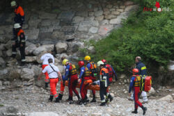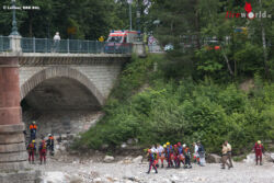 BAD REICHENHALL (BAYERN): Die BRK-Wasserwacht führt derzeit in der Saalach einen überregionalen Ausbildungskurs zur Fließgewässerrettung durch. Aus der Fortbildung wurde dann am Samstagvormittag, 27. Juni 2015, gegen 10 Uhr unter der Luitpoldbrücke plötzlich Ernst: Nachdem ein Teilnehmer schon mehrmals ins reißende Wasser gesprungen war, verletzte er sich beim letzten Sprung am Rücken.