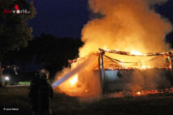 GROSS EILSTORF / WALSRODE (DEUTSCHLAND): In der Nacht zum Samstag, 27. Juni 20015, brannte ein ca. 10×15 Meter großes, teilmassives Gebäude, welches zur Lagerung von Heurundballen genutzt wurde. Im Einsatz waren die örtlich zuständige Feuerwehr Groß Eilstorf, die Stützpunktfeuerwehr Südkampen sowie Kirchboitzen.