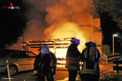 Walsrode, Heidekreis (jf) Wenige Stunden nach dem Einrücken aus Groß Eisltorf erneut eine Alarmierung. F1, brennen Mülltonnen, war die Meldung auf den DME. Doch beim Anmelden kam die Rückmeldung – es sollte ein Carport brennen, Feuer droht auf Pkw überzugreifen. Daher wurde auf F2 erhöht und nachalarmiert, ebenfalls wurde die Ortsfeuerwehr Honerdingen angefordert. Bei Ankunft stand ein hölzernes Mülltonnenhäuschen in Vollbrand, die Flammen hatten bereits auf daneben geparkte Fahrzeuge übergegriffen. Insgesamt wurden fünf Pkw beschädigt, mehrere Mülltonnen sowie der Unterstand wurden komplett beschädigt. Rund 300 Meter entfernt wurde ein weiterer Brand entdeckt, den konnten die Anwohner aber selber löschen. Die Polizei und der Brandschutzprüfer nahmen die Ermittlungen auf.