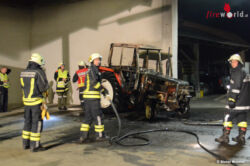 Aufgrund des Gefahrenpotentials in dem großen landwirtschaftlichen Objekt wurde zunächst Alarm für sieben Feuerwehren ausgelöst. Der Brand ging jedoch nur von einem Traktor innerhalb eines offenen Gebäudes aus. Noch vor dem Eintreffen der Feuerwehr konnte der Besitzer den Brand eindämmen. Die Mannschaft des ersten Tanklöschfahrzeuges löschte den Traktor dann schlussendlich ab.