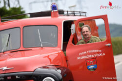 Zum 150jährigen Jubiläum lud nämlich die Feuerwehr Regau zu einem Treffen alter Blaulichtautos und zu einer Rundfahrt ein. Den Vogel schoss dabei der Vöcklabrucker Roland Prenneis mit dem ältesten teilnehmenden Fahrzeug ab – einem Mercedes Baujahr 1942. Der Fahrer ist übrigens genau gleich alt wie sein Oldie-Fahrzeug.