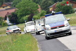 REGAU (OÖ): Ungewöhnliche Blaulicht-Parade in der Umgebung von Vöcklabruck am Vormittag des 27. Juni 2015: Da staunten Passanten nicht schlecht, als ein Konvoi alter Feuerwehr-, Gendarmerie- und Rettungsautos mit Blaulicht und Folgetonhorn von Regau zum Attersee fuhr.