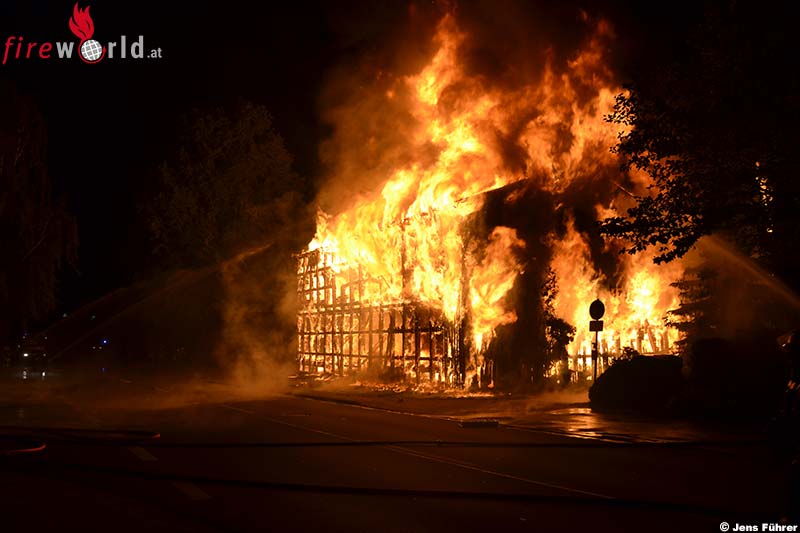 D: Holzgebäude in Vollbrand – Feuerwehr verhindert Übergreifen der Flammen