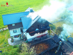 Oö: Brand eines Wohnhauses in Bad Ischl -> Drohneneinsatz und verletzter Feuerwehrmann