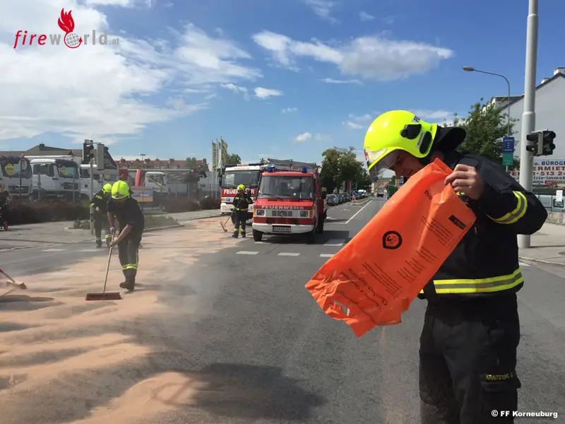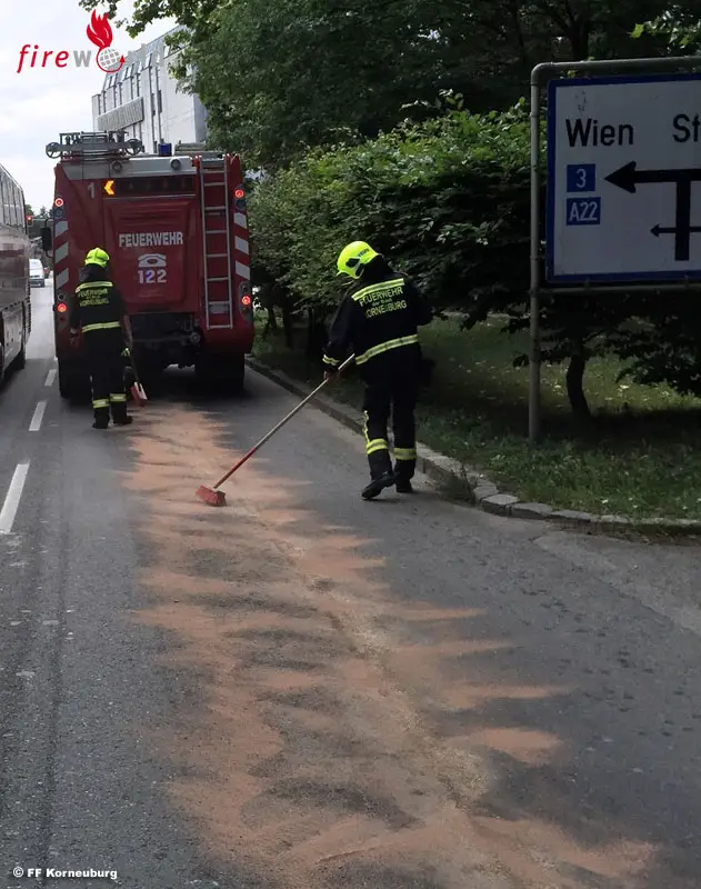 KORNEUBURG (NÖ): Am Nachmittag des 29. Juni wurde die Tagesbereitschaftsgruppe der Freiwilligen Feuerwehr der Stadt Korneuburg zu einem Ölaustritt im Bereich Sudetendeutschestraße gerufen.