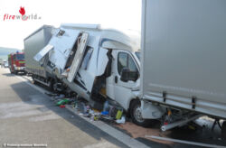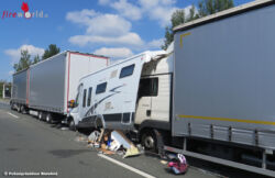 Deutschland: Lkw schiebt Wohnmobil auf Lkw-Zug auf – Zwei Schwerverletzte auf der BAB44