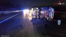Nach Absprache mit der Autobahnpolizei wurde zuerst der im Frontbereich beschädigte Pkw mittels Ladekran auf das LAST-Fahrzeug geladen. Um den auf der Seite liegenden Kleintransporter aufstellen zu können wurde die Autobahn in Fahrtrichtung Graz für ca. 15 Minuten gesperrt. So konnte auch dieser mit Hilfe der Seilwinde wieder auf die Räder gestellt und mit der Hubbrille des LAST-Fahrzeuges zum Abtransport vorbereitet werden. Nach einer groben Fahrbahnreinigung wurde die Einsatzstelle an die ASFINAG übergeben, von welcher die restlichen ausgeflossenen Betriebsmittel gebunden wurden.