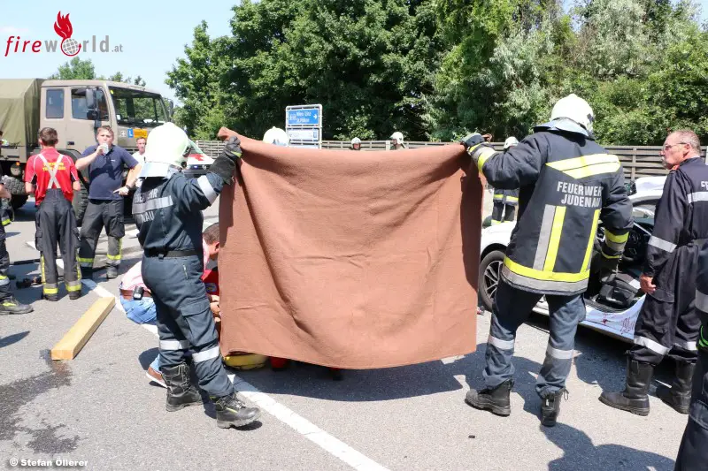 Nö: Personenrettung nach Pkw-Kollision mit Heeresfahrzeug auf der B 19 bei Judenau