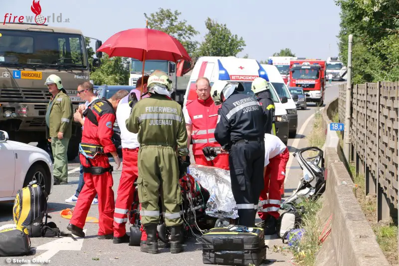 JUDENAU (NÖ): Auf der B19 bei Judenau kam es am 2. Juli 2015 kurz vor 14.00 Uhr zu einem schweren Verkehrsunfall. Ein Fahrschul-Lkw des Bundesheeres war von Tulln kommend auf der B 19 Richtung Neulengbach unterwegs. Zur gleichen Zeit fuhr bei der Auffahrt Judenau eine Frau mit einem Audi A4 auf die Bundesstraße auf. Dabei kam es zu einem Zusammenstoß. Im Pkw waren eine Mutter und ihre Tochter.