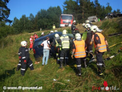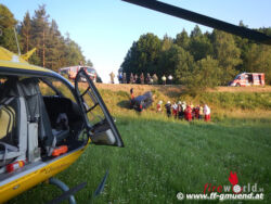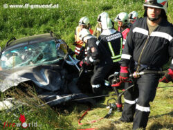 Der Lenker hatte schwere Verletzungen im Bereich der unteren Extremitäten erlitten. In engster Zusammenarbeit mit dem Team des Gmünder Notarztwagens wurde der Verletzte von den Mitgliedern beider Feuerwehren aus dem Fahrzeug befreit, wobei sich die Rettung auf Grund der starken Verformungen als extrem schwierig und zeitaufwendig erwies.