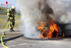 VÖSENDORF (NÖ): Am frühen Abend des 2. Juli 2015 geriet ein Pkw auf der Nordspange der Schönbrunner Allee in Vösendorf in Brand. Der Fahrer stellte sein Fahrzeug im Kreisverkehr noch rechtzeitig ab und konnte sich unverletzt in Sicherheit bringen.