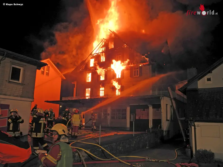 Schweiz: Wohnhaus in Brunnen lichterloh in Flammen