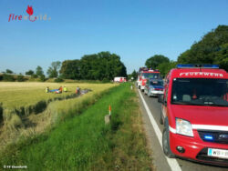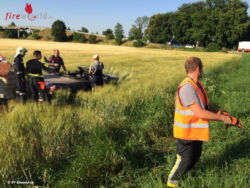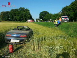 Ein Fahrzeuglenker kam nach der Kurve Richtung Ebenfurth aus unbekannter Ursache von der Fahrbahn ab, das Cabrio überschlug sich einmal und kam wieder auf den Rädern zum Stillstand. Der Lenker wurde dabei aus dem Fahrzeug geschleudert und blieb im Feld etwa 10 Meter neben seinem Fahrzeug liegen. Nach der Erstversorgung durch das Team des RTW Ebenfurth und der Besatzung des NAW Wr. Neustadt wurde der ansprechbare Patient mit dem NAW Wr. Neustadt ins LKH-Wr. Neustadt eingeliefert. Das verunfallte Cabrio wurde nach polizeilicher Unfallaufnahme mittels WLF-Kran geborgen und gesichert abgestellt. Nach etwa einer Stunde war der Einsatz für die FF-Ebenfurth Stadt wieder beendet und die Einsatzbereitschaft hergestellt.