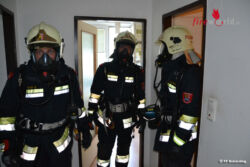 Der Atemschutztrupp drang in die verrauchte Wohnung ein und konnte im Badezimmer einen schmorenden gelben Sack vorfinden. Dieser wurde abgelöscht und ins Freie getragen. Im Anschluss wurde auch die Wohnung mittels Hochleistungslüfter rauchfrei gemacht. Die Drehleiter und das zweite Tanklöschfahrzeug mit Atemschutztrupp standen am Einsatzort in Bereitschaft. Im Anschluss wurde auch die Wohnung belüftet und konnte an die Polizei bzw. den mittlerweile eingetroffenen Bewohner übergeben werden.
