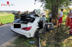 MEHRNBACH (OÖ): Die Feuerwehr Neuhofen im Innkreis wurde am 4. Juli 2015 um 14.31 Uhr gemeinsam mit der Feuerwehr Mehrnbach und Oberholz zu einem Verkehrsunfall mit eingeklemmter Person alarmiert.