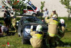 BAD ISCHL (OÖ): Am Sonntag, 5. Juli 2015, um 15:45 Uhr wurden die Freiwilligen Feuerwehren Bad Ischl und Pfandl zu einem Verkehrsunfall mit eingeklemmter Person alarmiert. In der Nähe der Lindaustraße kam ein Pkw von einem Schotterweg vom Weg ab und stürzte über eine Böschung.