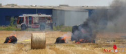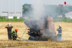 ENNSDORF (NÖ): Völlig augebrannt ist eine Strohpresse bei Feldarbeiten in Ennsdorf. Gegen 15:30 wurden am 5. Juli 2015 mehrere Feuerwehren zu einem Gewerbebrand nach Ennsdorf alarmiert.