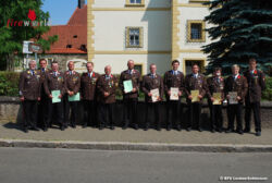 Nach Feststellung der Beschlussfähigkeit wurden der Rechnungsabschluss 2014 und der Budgetvoranschlag für das Jahr 2016 einstimmig beschlossen. Mit der Bestellung von Mario Burger als Sonderbeauftragter für Schulungen zur Entstehungsbrandbekämpfung, gleichzeitig verbunden mit dem Dienstgrad „Brandinspektor des Fachdienstes“, endete die Tagung. Danach begann um 10.00 Uhr der Festakt vor dem Feuerwehrhaus der FF Göß. Dazu konnte Kdt.-Stellvertreter OBI Rene Bittner eine große Zahl von Ehrengästen, darunter Landtagspräsidentin a.D. Dr. Anna Rieder, Bezirkshauptmann Hofrat Dr. Walter Kreutzwiesner, in Vertretung von Bürgermeister Kurt Wallner Vizebürgermeister Maximilian Jäger, Stadtamtsdirektor Dr. Wolfgang Domian, Stadtwerkedirektor DI Roland Schindler, Landtagsabgeordneter a.D. Erich Prattes, Braumeister DI Andreas Werner, OBR Manfred Harrer, BR Ing. Johann Diethart, die ABI Herbert Edlinger, Hans-Peter Moder, Gerhard Schöngrundner und Gerald Zechner, eine Abordnung der FF Strassburg (Kärnten) mit BI Matthias Lassenberger, BP-Kontrollinspektor Gerhard Handler, BP-Abteilungsinspektor Alfred Stradner, Bezirksgeschäftsführer des ÖRK Leoben ORR Josef Himsl, Bezirksstellenleiter des Steir. Zivilschutzverbandes Leoben Alexander Debeletz sowie die Bauernkapelle des Musikvereines Göß unter der Leitung von Rudolf Strauss begrüßen. Kommandant ABI d.F. Karl Lannegger streifte in seiner Festansprache die Zeit der Feuerwehr Göß von ihrer Gründung im Jahr 1875 bis zum heutigen Tage.