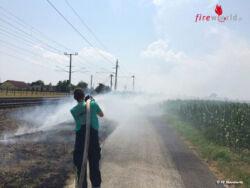 EBENFURTH (NÖ): Am Dienstag, den 7. Juli 2015 um 13:35 Uhr, wurde die Feuerwehr der Stadt Ebenfurth mittels Sirene zu einem Bahndammbrand entlang der Pottendorfer-Linie gerufen.