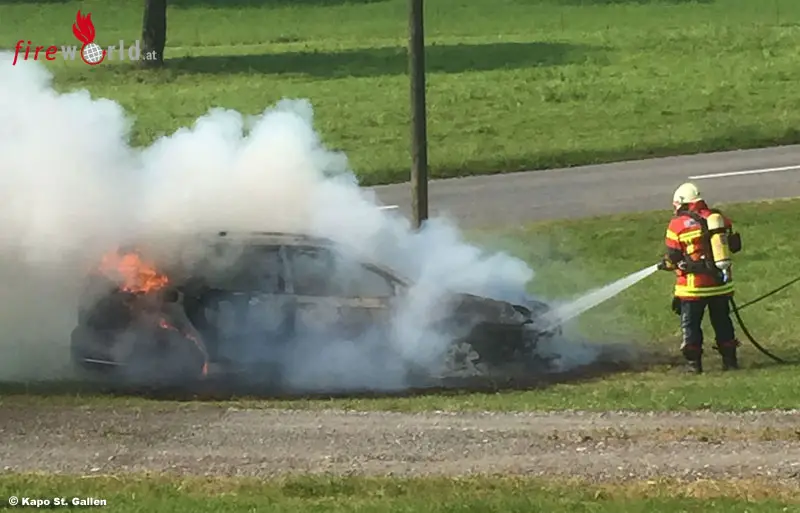 BERG (SCHWEIZ): Kurz vor 17:30 Uhr ist am 6. Juli 2015 auf der Pfauenmoosstraße in Berg ein Auto in Brand geraten. Die Feuerwehr konnte das Feuer löschen. Das Fahrzeug erlitt Totalschaden, der Sachschaden beträgt mehrere tausend Franken.