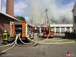 Da Menschen weder gefährdet noch verletzt wurden, konnten sich die eingesetzten Kräfte umgehend um den Schutz der übrigen Gebäudeteile und der angrenzenden Gebäude kümmern. Mit einem massiven Wassereinsatz über zwei Drehleitern mit Wenderohren und der Vornahme einiger C-Rohre, konnte ein Übergriff der Flammen erfolgreich verhindert werden. Da die physische Belastung der vorgehenden Frauen und Männer aufgrund der hohen Außentemperaturen extrem hoch war, wurde ein sehr hoher Kräfteansatz notwendig. Die Bekämpfung des eigentlichen Brandes gestaltete sich sehr schwierig, da das Feuer auf die Dachkonstruktion übergriff und ein öffnen des Daches notwendig machte. Die Brandbekämpfung in diesem Bereich wurde anschließend durch die geschaffene Öffnung möglich und so konnte ein ablöschen der Glutnester erfolgen.