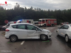 WIENER NEUSTADT (NÖ): Im einsetzenden Feierabendverkehr des 8. Juli 2015 kam es an der Kreuzung der B54 mit der L142 auf regennasser Fahrbahn zu einem Verkehrsunfall mit zwei Fahrzeugen. Eine Frau saß mit ihren beiden Kindern auf einer Verkehrsinsel zwischen den Unfallfahrzeugen.