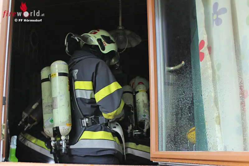 Der Brand ging vom Herd in der Küche einer Erdgeschosswohnung aus. Die ersteintreffende FF Eibiswald führte unter schwerem Atemschutz unverzüglich einen Innenangriff durch und konnte so den Brand rasch löschen und ein Übergreifen der Flammen auf weitere Einrichtungsgegenstände verhindern. Inzwischen wurde von der FF Hörmsdorf ein Atemschutzrettungstrupp gestellt und ein Überdruckbelüfter in Stellung gebracht, um die Wohnung zu entrauchen.