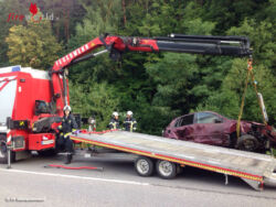 Nach dem Aufnehmen der Unfalldaten durch die Polizei wurde der Pkw mittels Kran des SRFA verlastet und auf das Gelände der Feuerwehr Oberpullendorf gebracht. Es waren SRFA, Abschleppanhänger und KDOF im Einsatz.