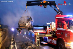Nach der Aufnahme durch die Autobahnpolizei wurden die Überreste des Fahrzeuges mit dem Kran des Wechselladefahrzeuges verladen, zur Tullner Markenwerkstätte gebracht und dort abgestellt. Während der Lösch- und Bergearbeiten musste die erste Fahrspur gesperrt werden. Die Einsatzkräfte der Stadtfeuerwehr Tulln waren um 22:26 Uhr wieder eingerückt.