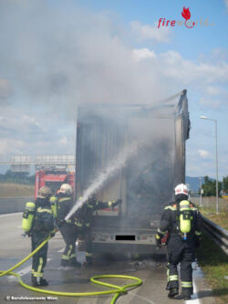 Der Lenker des mit Schrott beladenen Fahrzeuges bemerkte den Brand und verständigte die Feuerwehr. Von der Berufsfeuerwehr Wien wurde der Brand unter Atemschutz lokalisiert, erste Löschmaßnahmen eingeleitet und das Fahrzeug selbst mit einem speziellen Abschleppfahrzeug für Lastkraftwagen von der Schnellstraße geschleppt.