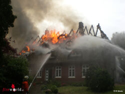 Die ca. 150 Feuerwehrleute aus ganz Nordkehdingen konnten das komplette Niederbrennen der drei reetgedeckten Fachwerkhäuser nicht verhindern. Ein auf dem Grundstück befindlicher Schuppen bzw. Stall brannte ebenfalls nieder. Die Hausbewohner waren natürlich aufgrund des Ereignisses völlig schockiert, blieben aber letztendlich unverletzt. Sie konnten noch alle Tiere, darunter mehrere Pferde, Hunde und Hühner ins Freie lassen.