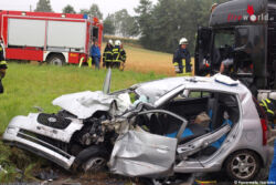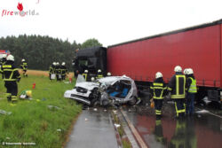 ISERLOHN (DEUTSCHLAND): Zu einem Verkehrsunfall musste um 13:16 Uhr des 13. Juli 2015 die Feuerwehr Iserlohn ausrücken. Bei dem Unfall auf der Bundesstraße 233, der Drüpplingser Straße, waren ein Pkw und ein Lkw zusammengestoßen. Hierbei wurde die Fahrerin des Pkw in ihrem Auto eingeklemmt und schwer verletzt.