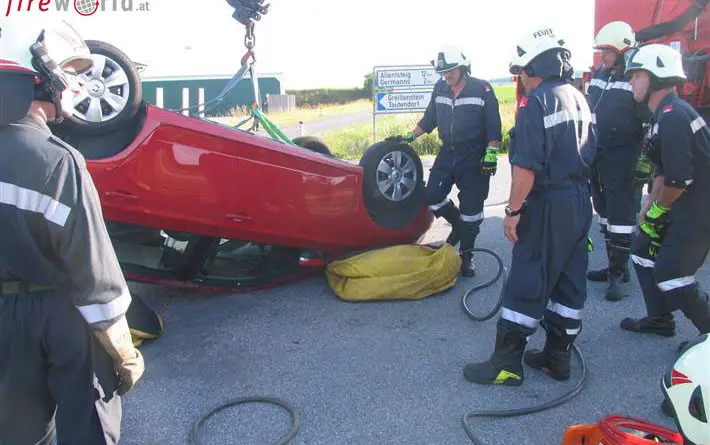 WINKL (NÖ): Am Samstag, den 11. Juli 2015, wurde die Feuerwehr Horn gegen 17:45 Uhr zur Unterstützung der Feuerwehr Winkl zu einem Verkehrsunfall bei Winkl Kreuzung Richtung Allentsteig alarmiert. Nach einem Zusammenstoß landete ein Pkw am Dach.