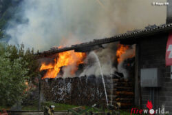 LOSTALLO (SCHWEIZ): In Lostallo ist am Montagvormittag, 13. Juli 2015, in einem Stall Feuer ausgebrochen. Das Gebäude brannte vollständig ab. Verletzt wurde niemand.