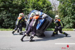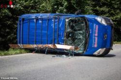 Der Fahrer eines blauen Peugeot-Handwerker-Fahrzeugs aus Salzburg war von Laufen kommend in Richtung Freilassing unterwegs und wollte offenbar eine Fahrzeugkolonne überholen. Als er zum Überholen ansetzte, wollte gleichzeitig ein schwarzer Mitsubishi vor ihm ebenfalls überholen. Aus Schreck verriss der Österreicher das Steuer seines Kastenwagens, geriet aufs Bankett und überschlug sich, wobei er auf der Beifahrerseite liegen blieb. Er streifte dabei einen neben ihm fahrenden weißen Peugeot an der hinteren linken Seite. Der weiße Peugeot drehte sich und schleuderte in die gegenüberliegende Böschung.