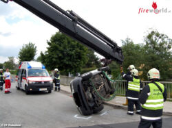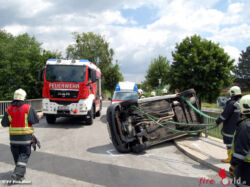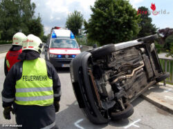 Einer der beiden Pkw überschlug sich dabei und kam seitlich an einem Brückengeländer zum Liegen. Zwei Männer erlitten bei dem Crash Verletzungen unbestimmten Grades. Sie wurden vom Roten Kreuz Oberwart versorgt und ins Krankenhaus eingeliefert. Die Stadtfeuerwehr Pinkafeld sicherte die Unfallstelle ab, stellte den Brandschutz sicher und führte mittels SRF und WLF die Fahrzeugbergung durch. Die Josef- Haydnstraße war für die Dauer der Rettungs- und Bergearbeiten nur erschwert passierbar.