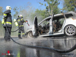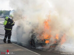 WIENER NEUSTADT (NÖ): Am Morgen des 17. Juli 2015 rückte die Feuerwehr Wiener Neustadt zu einem Fahrzeugbrand auf die A2 aus. Beim Eintreffen stand der Pkw bereits in Vollbrand. Verletzt wurde niemand. Am Fahrzeug entstand jedoch Totalschaden.