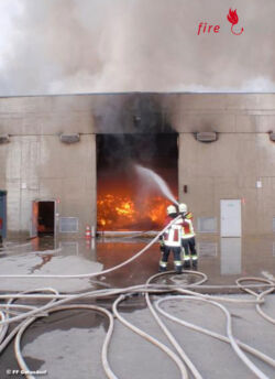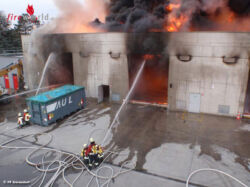Nö: Lagerhalle von Deponiebetrieb in Gerasdorf in Vollbrand