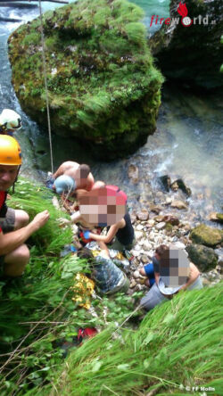 MOLLN (OÖ): Am Freitag, 17. Juli 2015, wurde die Freiw. Feuerwehr Molln um 18:11 Uhr zu einer Personenrettung an den Steyrfluss gerufen. Im Bereich Gradau Höhe „Humpel“ waren drei Personen mit einem Schlauchboot in akute Notlage geraten.