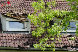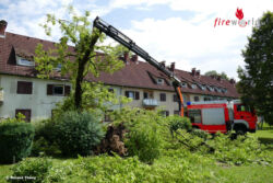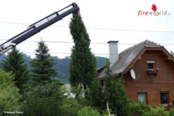 Besonders betroffen war diesmal der Ortsteil Redfeld wo mehrere Bäume umgestürzt sind und dabei Häuser und Dächer stark in Mitleidenschaft gezogen haben. Mittels Kranwagen und Drehleiter wurden die Bäume von rund 20 Mann der Stadtfeuerwehr Kapfenberg beseitigt und Schäden an Dächer und Fassaden so gut es ging repariert.