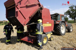 NEUHOFEN AN DER KREMS (OÖ): Zum Brand einer Strohballenpresse wurde die Freiw. Feuerwehr Neuhofen an der Krems am 19.07.2015 um 15:47 Uhr alarmiert. Der Besitzer hatte vor dem Eintreffen der Feuerwehr das Brandgut aus der Presse geräumt.