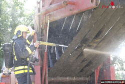 Die Feuerwehr Neuhofen und Weißenberg führten Nachlöscharbeiten durch und kontrollierten die Maschine mit der Wärmebildkamera auf versteckte Glutnester. Vermutliche Brandursache war ein Lagerschaden an einer Walze.