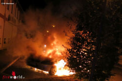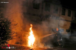 OBERWART (BGLD): Um 01:43 Uhr des 20. Juli 2015 wurde die Freiw. Feuerwehr der Stadt Oberwart erneut zu einem Pkw-Brand in die Lannergasse beim EKO-Center in Oberwart alarmiert. Ein Auto stand in Vollbrand.