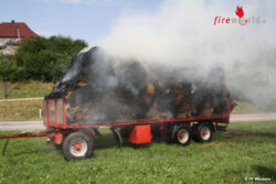 Oö: Anhänger mit Rundballen bei Windern in Flammen