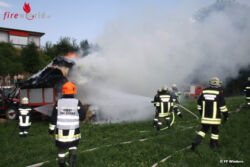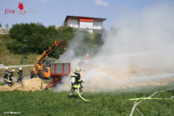 Sofort wurde mit den Löscharbeiten begonnen und die Wasserversorgung sichergestellt. Gemeinsam mit der FF Desselbrunn und der FF Sicking wurden die brennenden Rundballen gelöscht. Aufgrund der starken Rauschentwickung wurde schwerer Atemschutz angelegt. Zum Auffüllen der Atemluftflaschen wurde das ASF der BTF Steyrermühl zugezogen. Die Löscharbeiten konnten nach ca. zwei Stunden beendet werden!