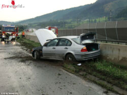 Ein Pkw kam – bedingt durch Aquaplaning – ins Schleudern und kollidierte mit der Mittelleitschiene. Der Fahrer konnte selbstständig das Fahrzeug von der Schnellstraße entfernen.