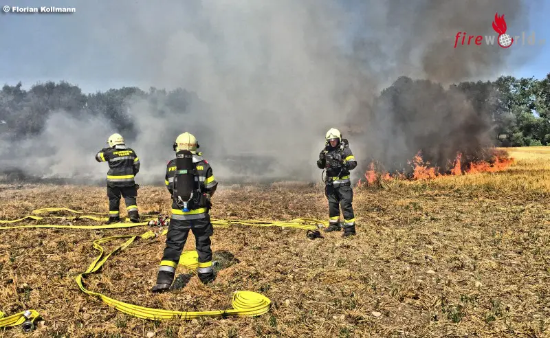 Oö: Trauner Feuerwehren löschen bei 37° C brennendes Feld