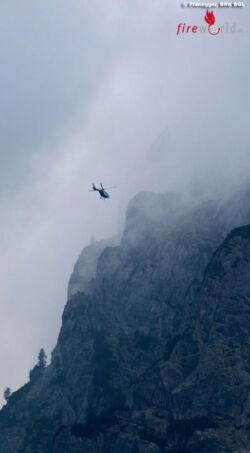 RAMSAU (BAYERN): Obwohl die Einsatzkräfte von Feuerwehr, Bergwacht und Polizei bereits am Samstag und Sonntag, 19. Juli 2015, intensiv mit Löscharbeiten beschäftigt waren, ist der alpine Vegetationsbrand in der Schärtenwand in 1.900 Metern Höhe erneut ausgebrochen, wobei am Donnerstagnachmittag, 23. Juli 2015, von der Blaueishütte aus offenes Feuer zu sehen war.