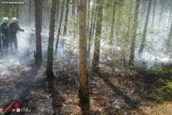 Die Ruhe währte nur kurz. Um 11:46 Uhr – Alarmierung zu Flur- und Waldbrand in Großmittel. Ca. 400m² Unterholz im Föhrenwald standen in Brand. Von Tank 1 und Tank 2 Haschendorf wurden mehrere Löschleitungen vorgenommen um ein Übergreifen des Bodenbrandes auf die Baumwipfel der Schwarzföhren zu verhindern. Die löschmaßnahmen wurden von den eintreffenden Tanklöschfahrzeugen aus Ebenfurth und Siegersdorf durch Vornahme von mehreren Strahlrohren unterstützt.